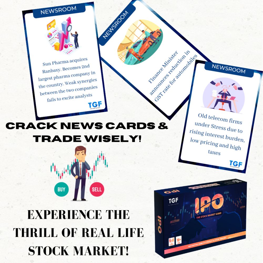 IPO – The Stock Market Board Game provides the thrilling experience of vintage stock market. The best stock exchange board game available in the market today with high quality contents and an optional mobile app for additional newsroom cards. The game never gets predictable and outdated with latest newsroom cards on the app.
